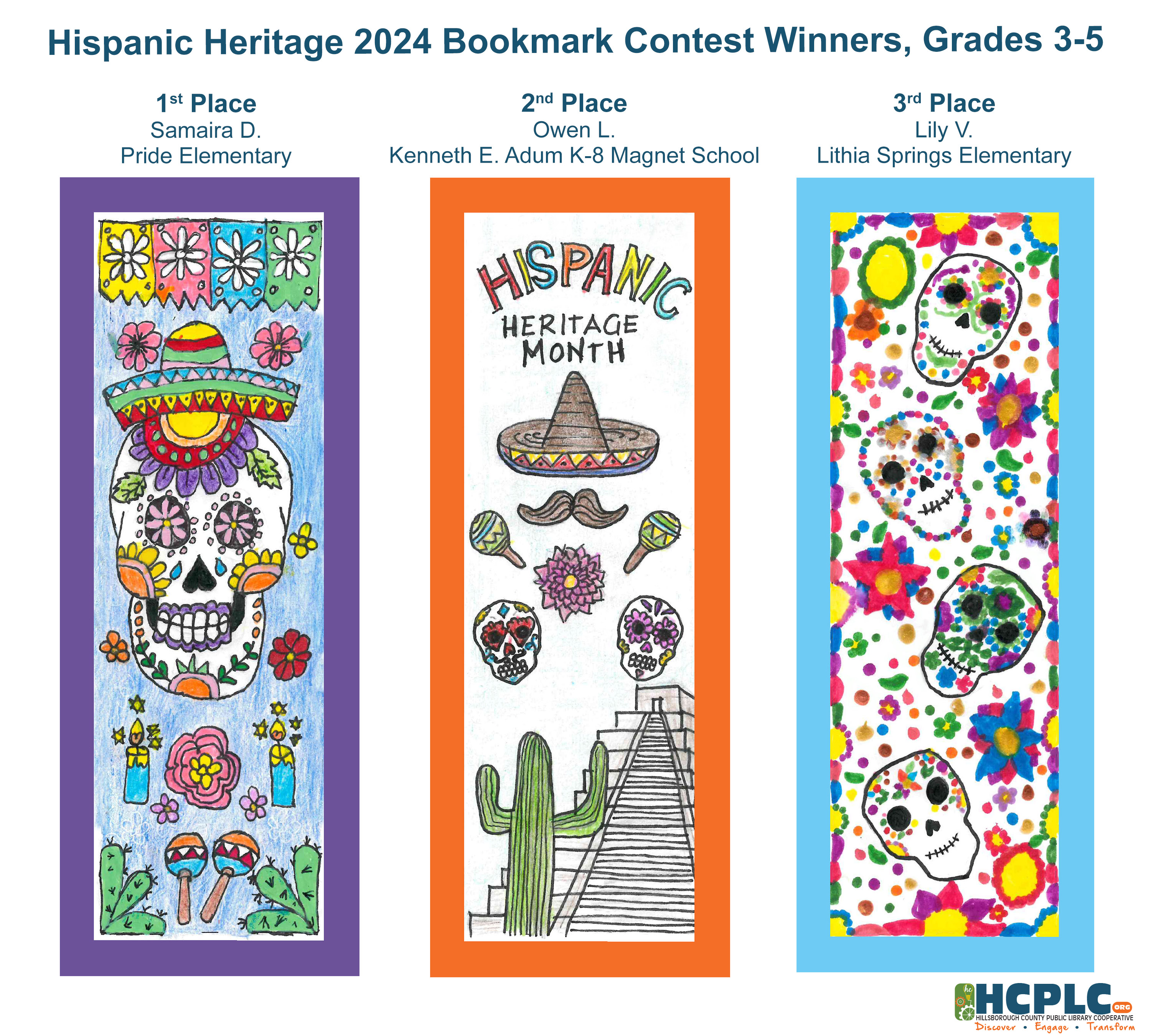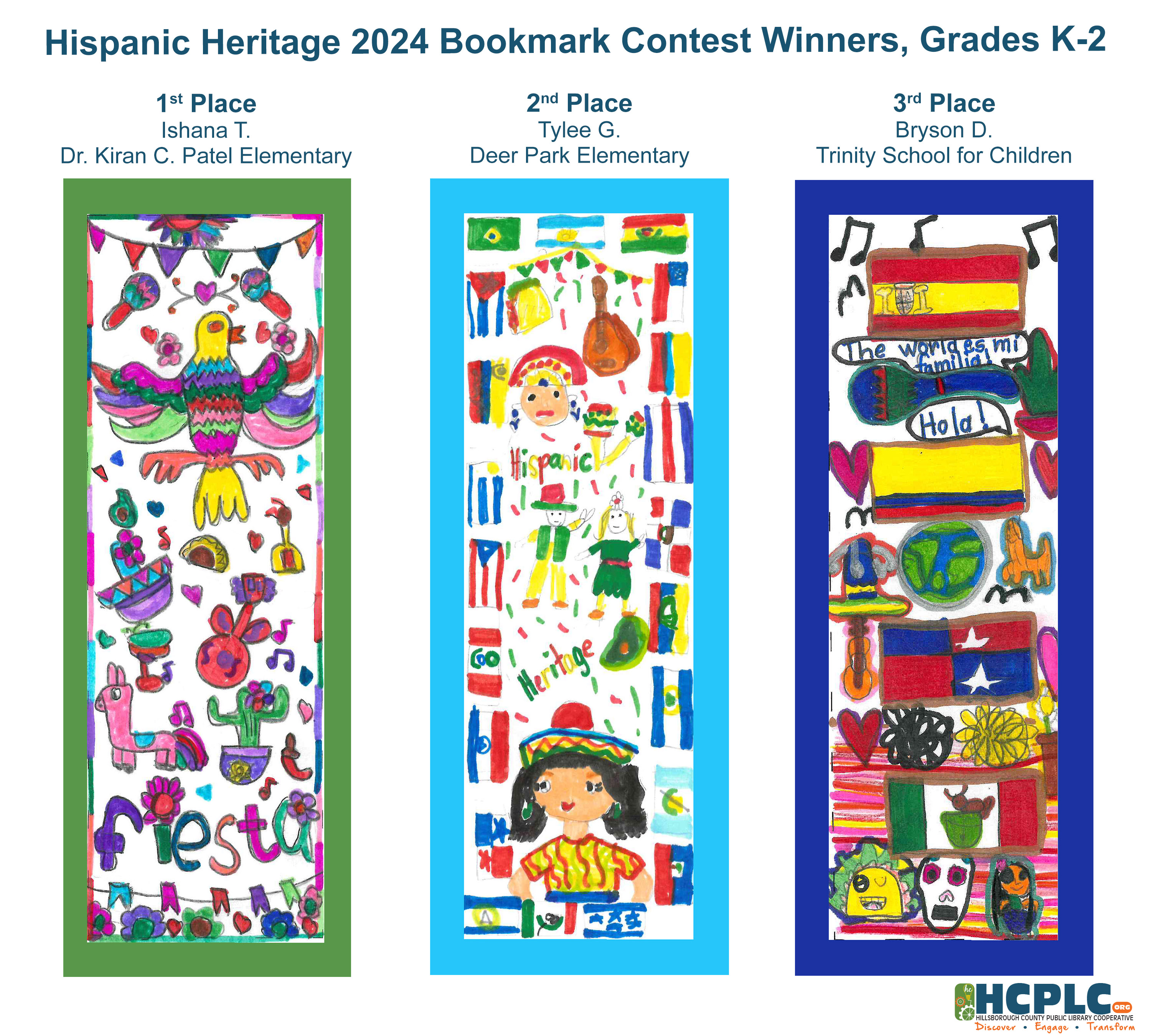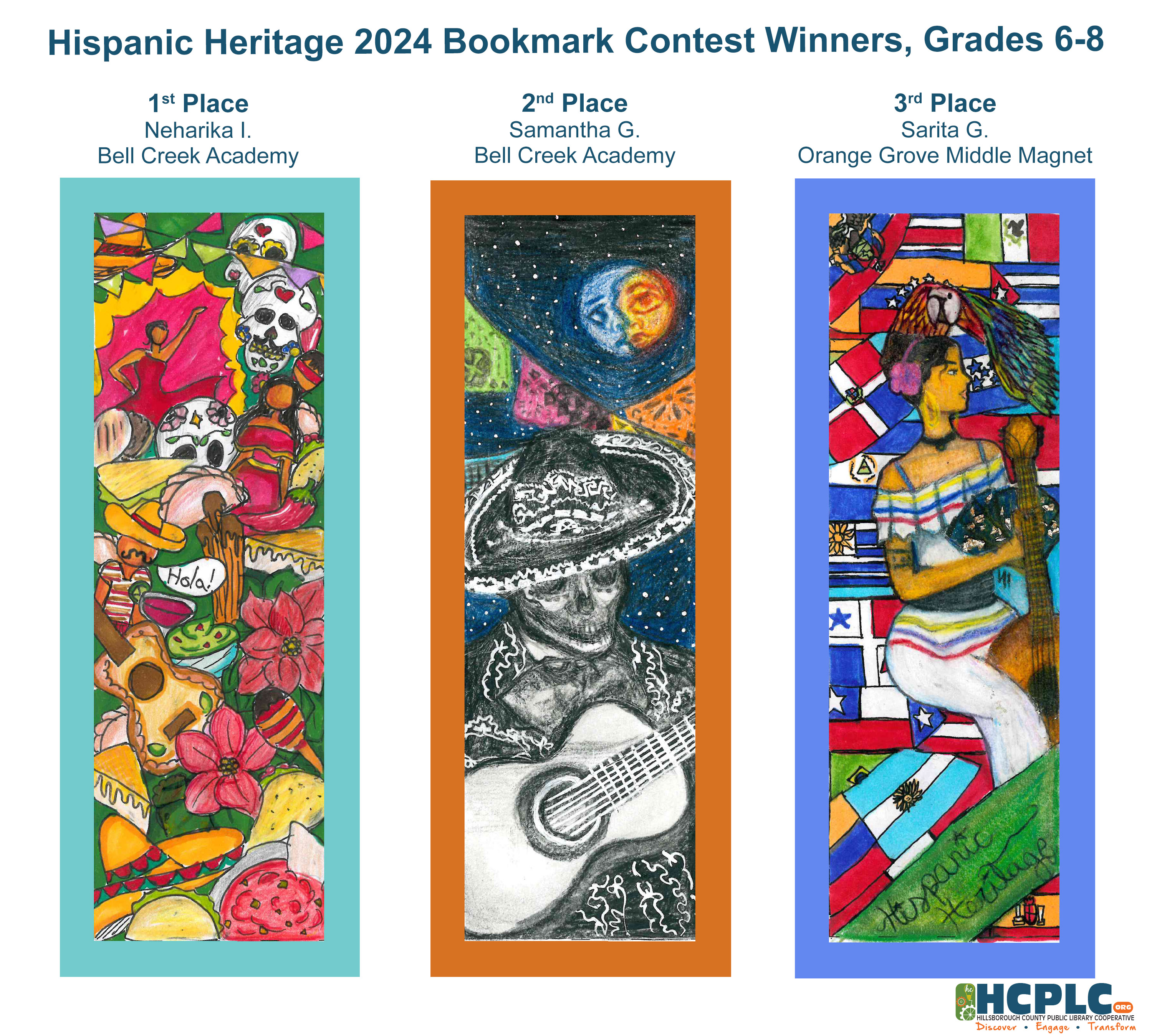 Students in grades K - 8 were invited to design a bookmark celebrating Hillsborough's Hispanic Heritage.